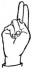 На ћирилици написано ПЕРО КАРАЏИЋ састоји се из 11 слова [?]. Исписано ћириличном једноручном азбуком за глувонеме:
